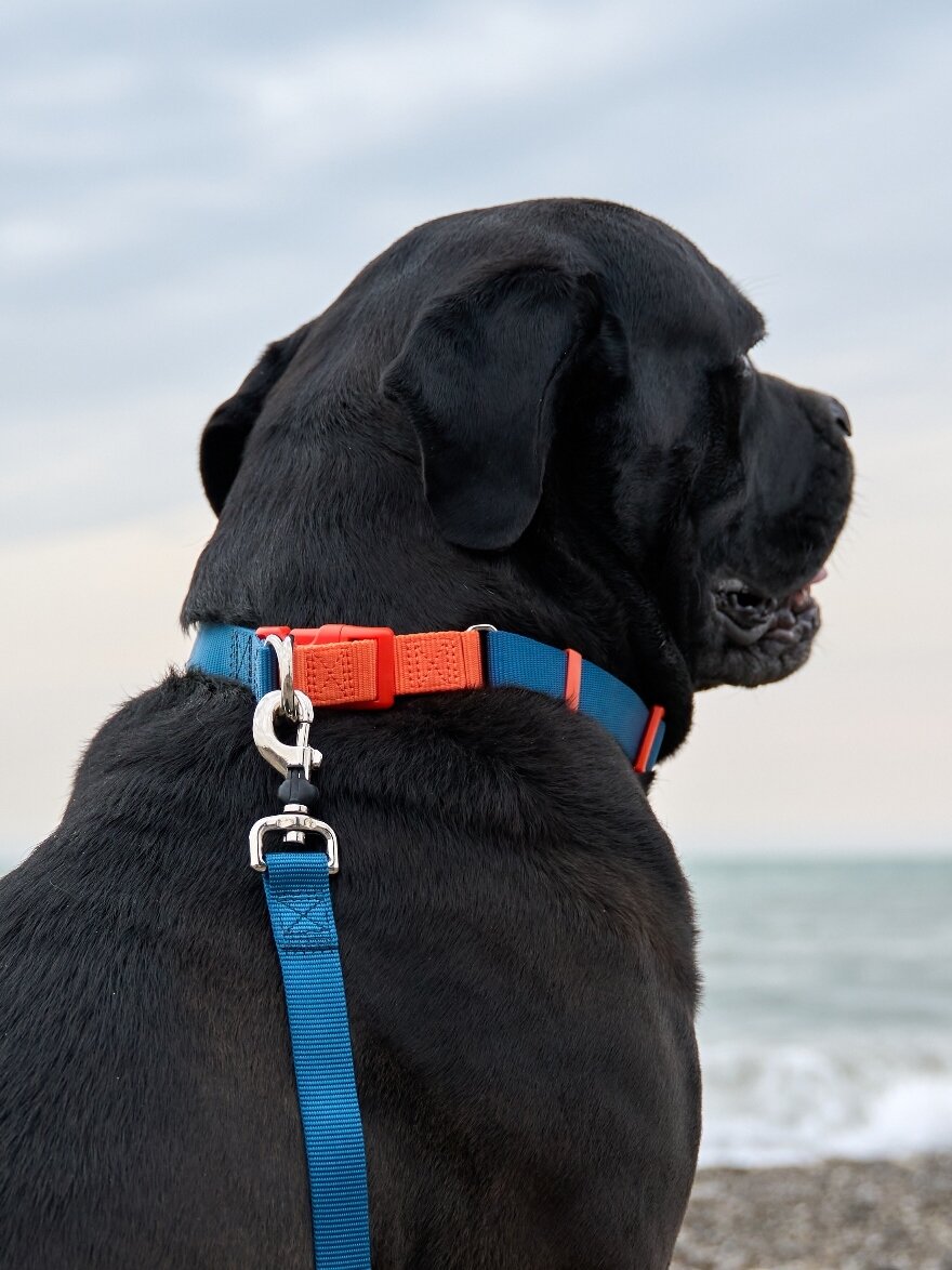"Серия 40 оттенков радуги. Поводок с защитой на карабине и мягкой анатомической вкладкой для рук, темно-синий, размер L (в упаковке)"