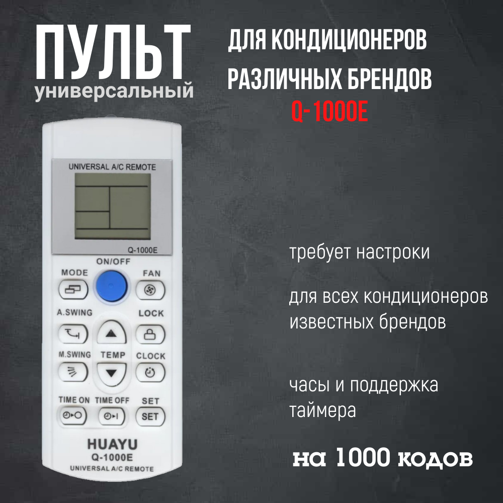 Пульт дистанционного управления HUAYU Q-1000E универсальный для кондиционера