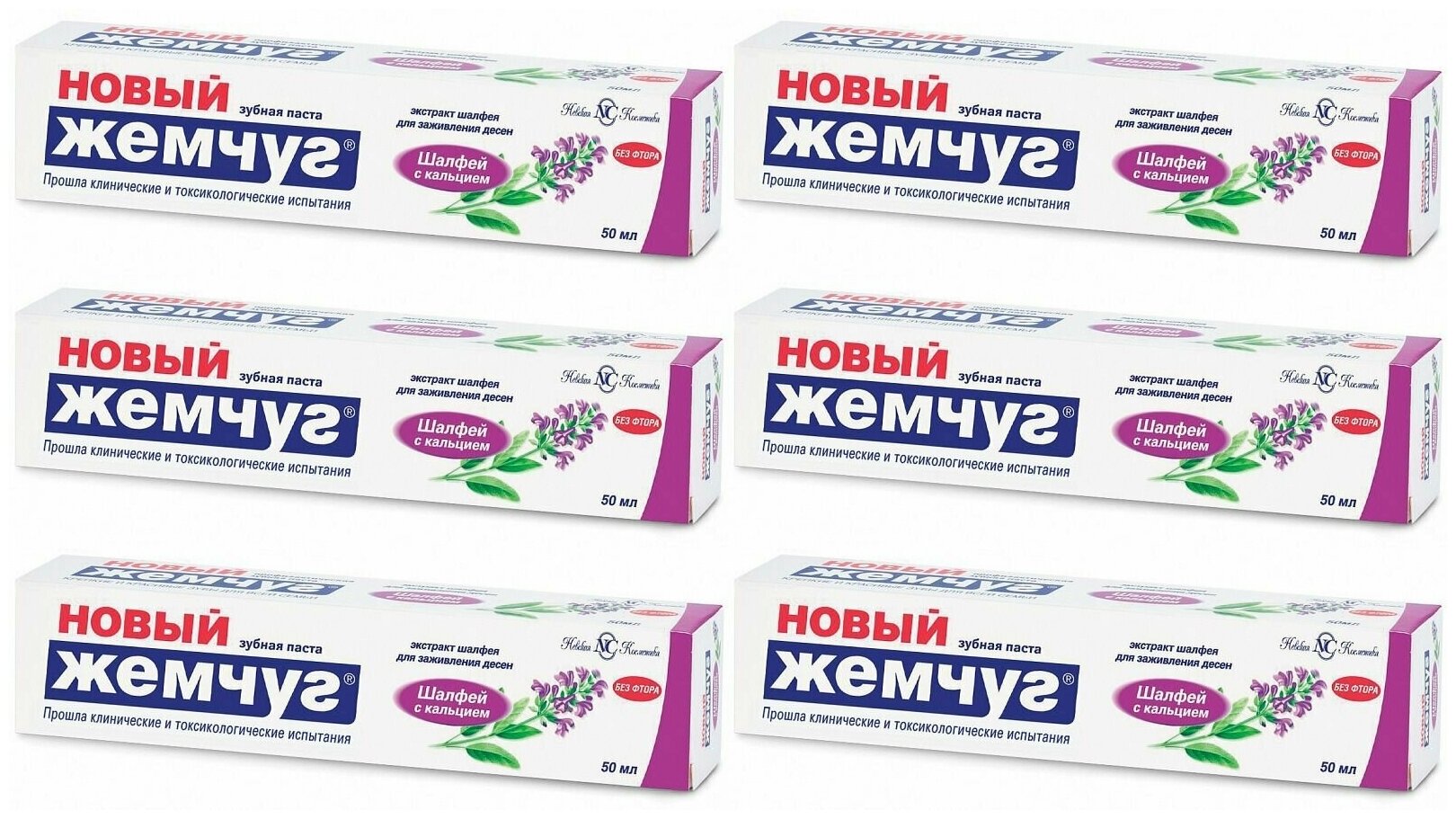 Новый жемчуг Зубная паста Шалфей с кальцием, 50 мл, 6 шт