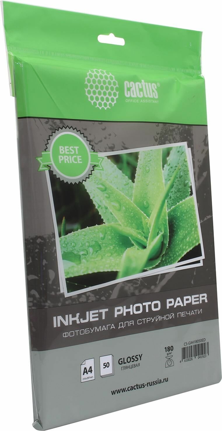 Фотобумага Cactus CS-GA418050ED, глянцевая, A4, 180 г/м2, 50 листов