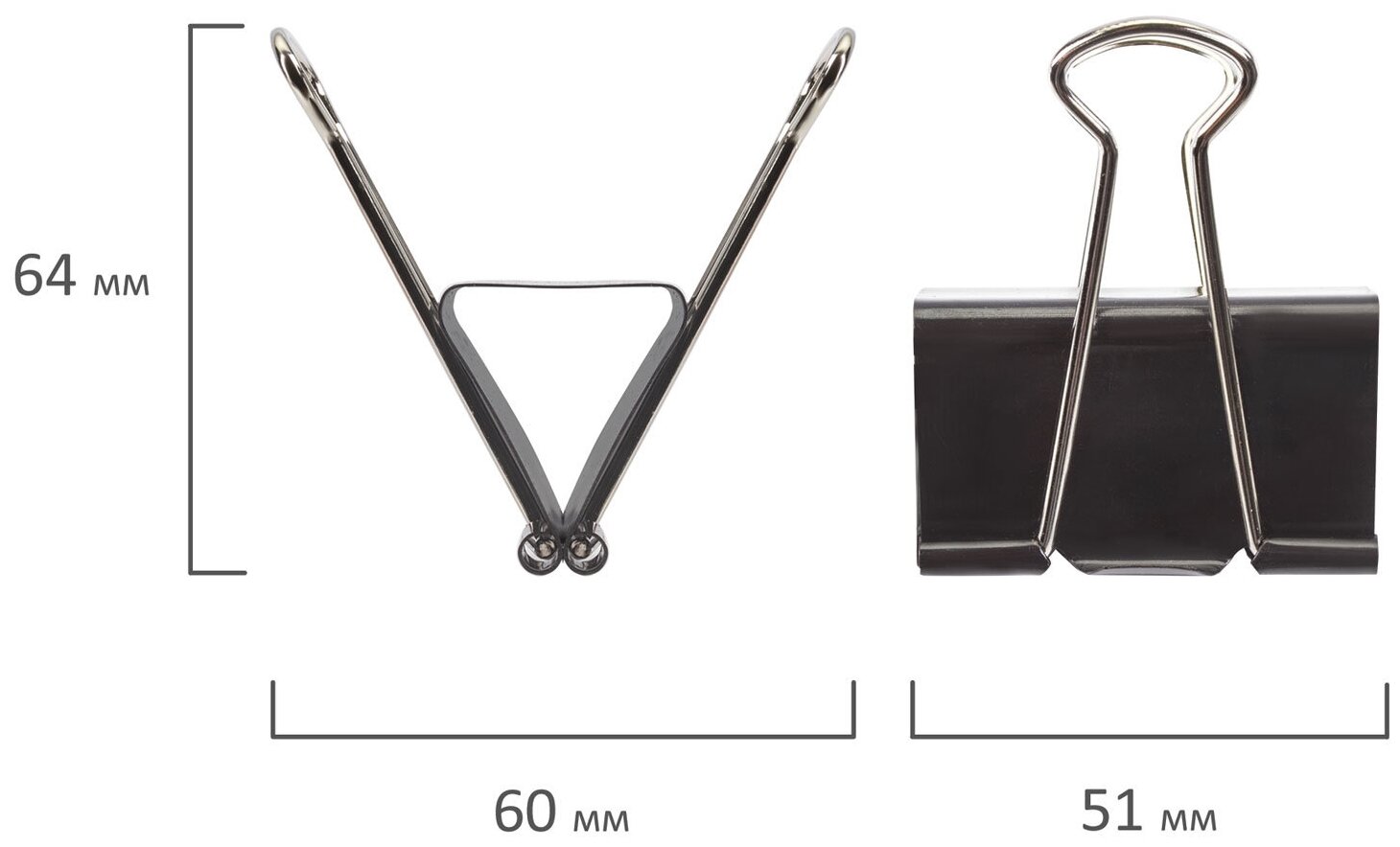 Зажимы канцелярские черные для бумаг набор большие Brauberg Комплект 12 шт., 51 мм, на 230 листов, черные, картонная коробка