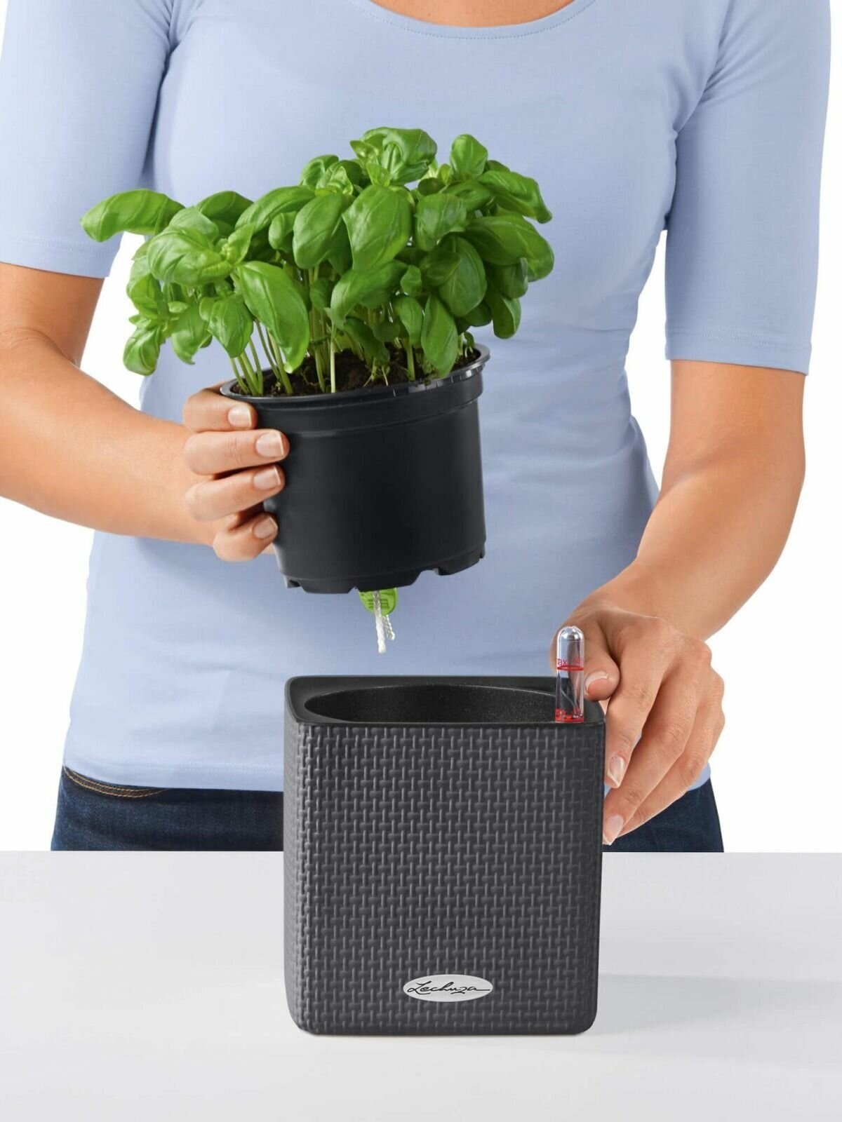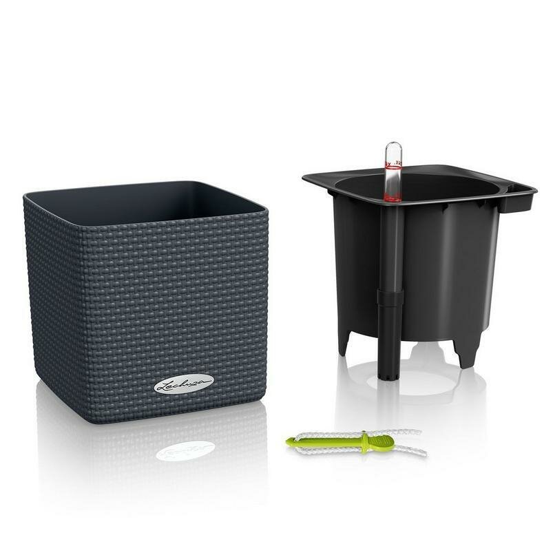 Кашпо с автополивом Lechuza CUBE Color 14, L14 W14 H13,5 см, темно-серое / горшок для цветов
