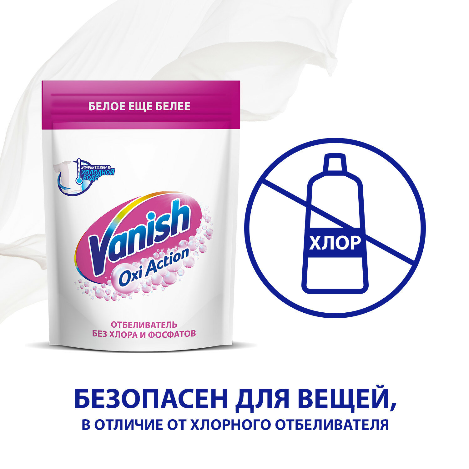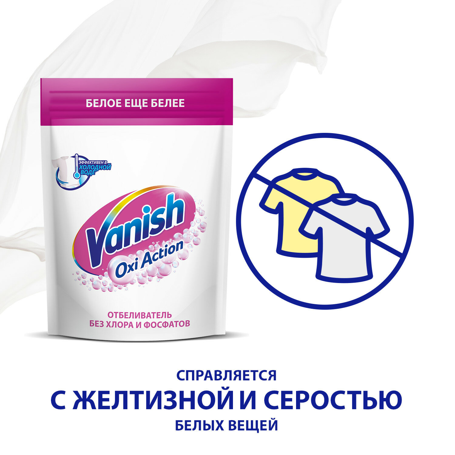 Кислородный отбеливатель и пятновыводитель для белых вещей и белья Vanish Oxi Action порошок дой пак, 500 г
