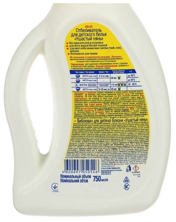 Ушастый нянь Отбеливатель жидкий 750мл/ для детского белья