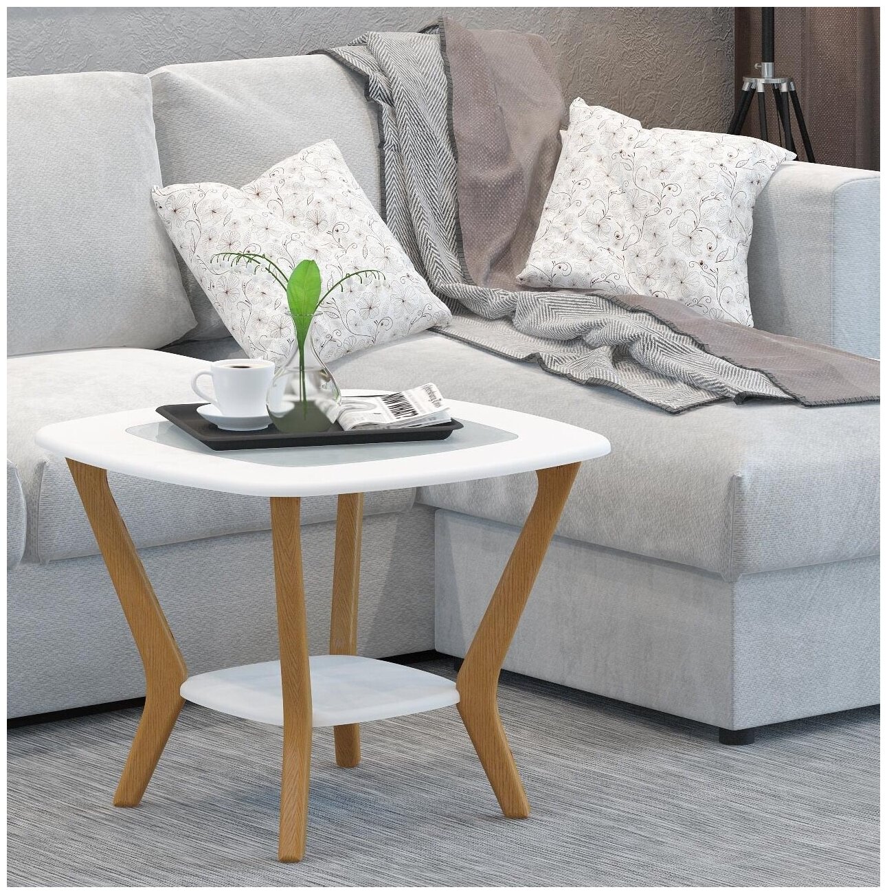 Стол журнальный "Мельбурн" (белый/дуб светлый)