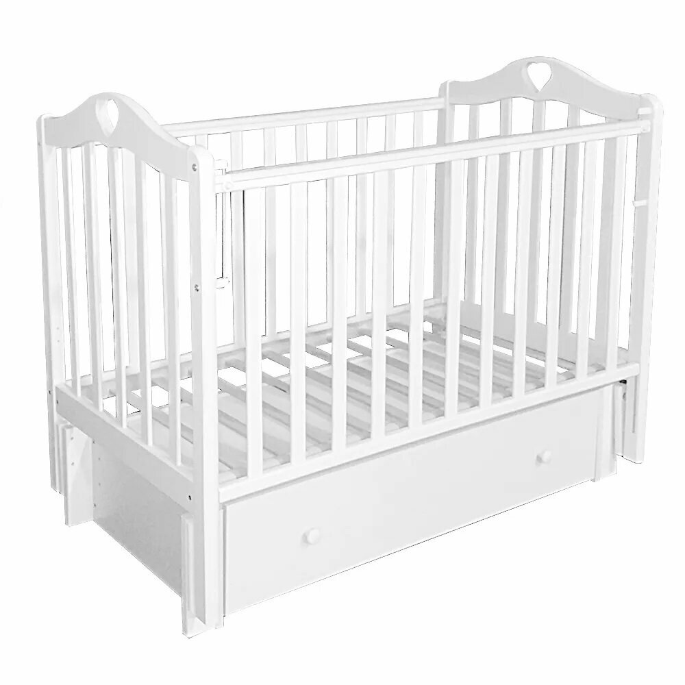 Детская кроватка для новорожденных Антел Каролина 4/6 с универсальным маятником, ящиком, съемной стенкой, цвет белый