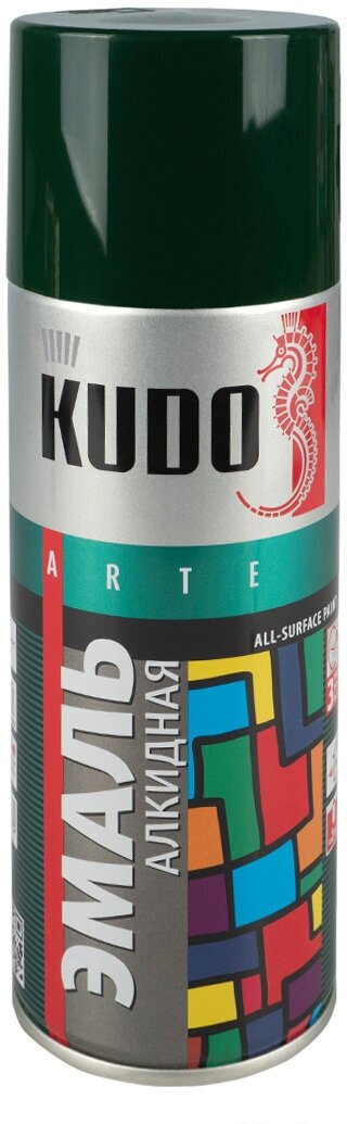 Купить Аэрозольная алкидная краска Kudo KU-10085, 520 мл, RAL 6005, глубоко-зеленая