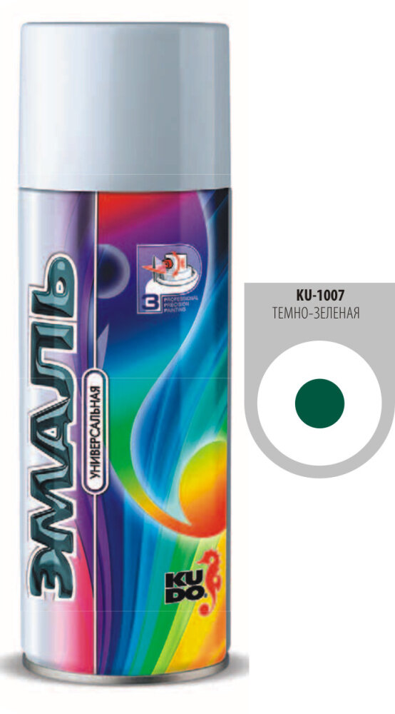 Купить Аэрозольная алкидная краска Kudo KU-1007, 520 мл, RAL 6016, темно-зеленая