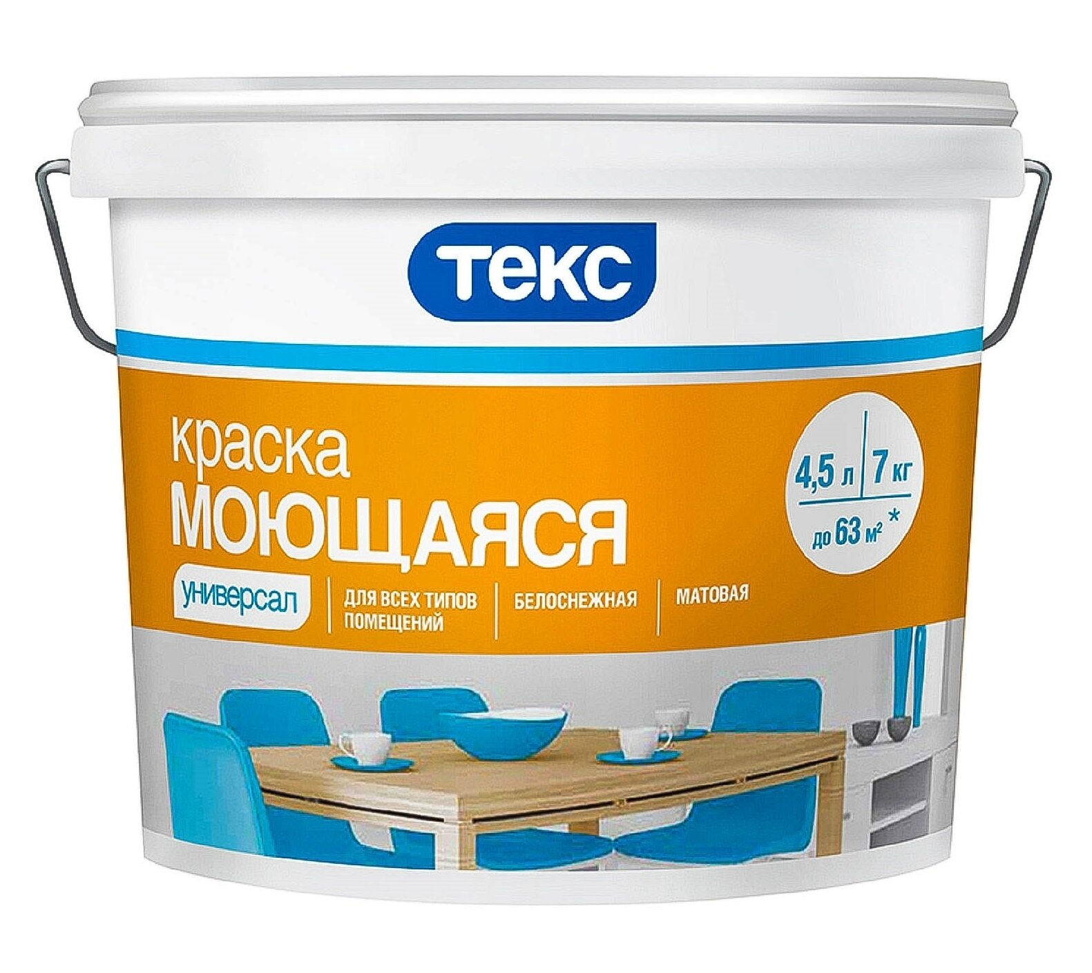Текс моющаяся краска для сухих и влажных помещений Универсал ( глубокоматовая, 7кг)