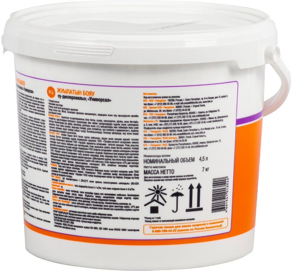 Купить Краска водно-дисперсионная текс Универсал моющаяся глубокоматовая белый 4.5 л 7 кг