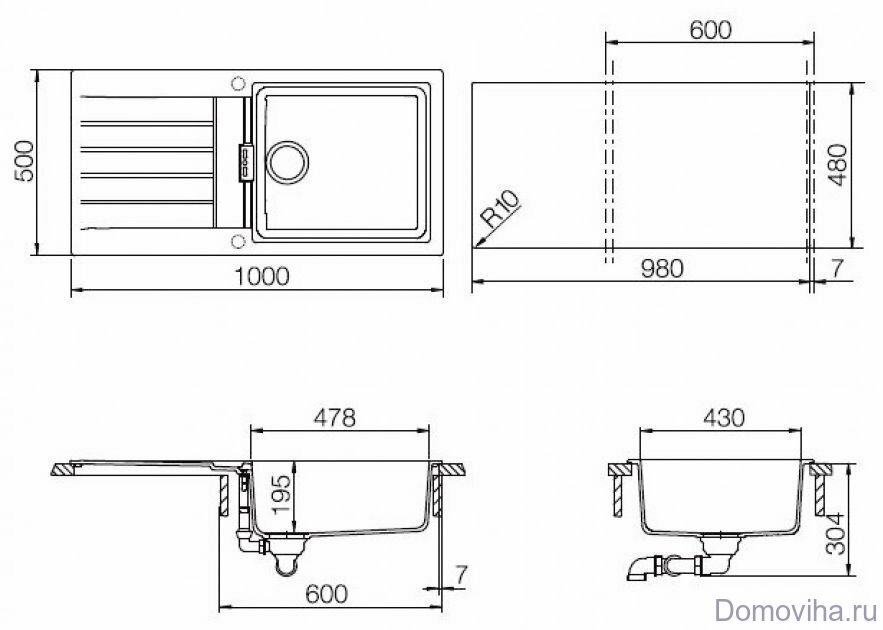 Врезная гранитная кухонная мойка 60 см, Eton 60D Large Schock Шок поларис