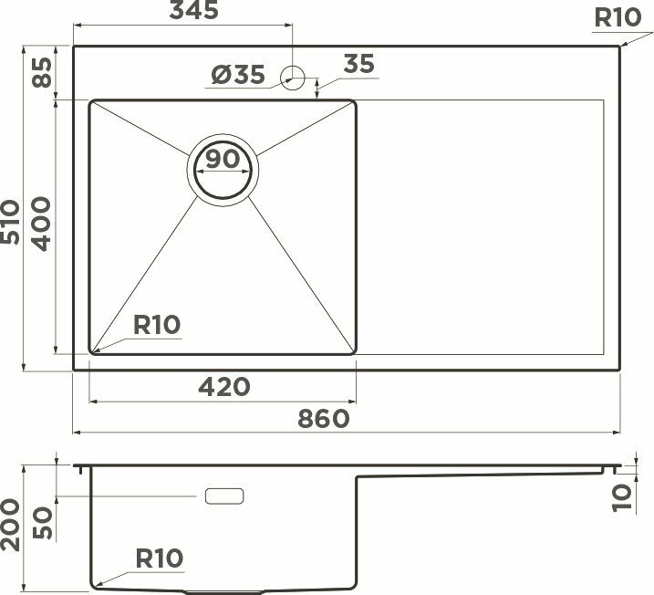 Кухонная мойка OMOIKIRI Akisame 86-IN-L 86х51см нерж.сталь/нержавеющая сталь