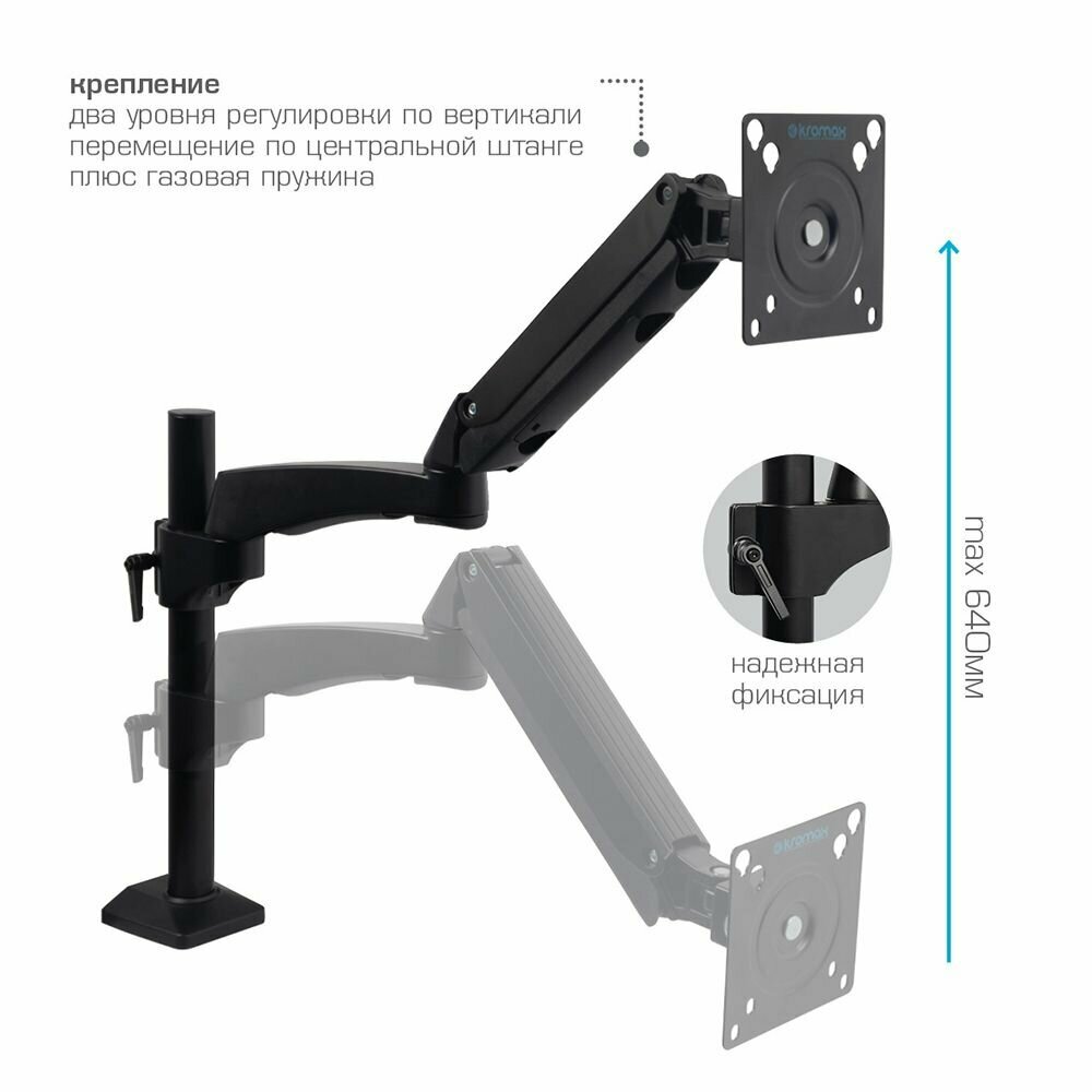 Кронштейн для монитора Kromax OFFICE-11, настольный, поворот и наклон, черный (20226)