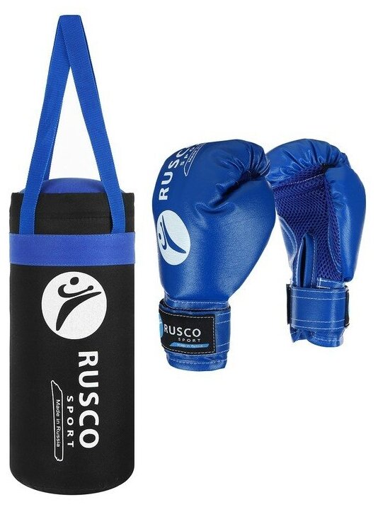 RuscoSport Набор боксёрский для начинающих RUSCO SPORT: мешок + перчатки, цвет синий (4 OZ)