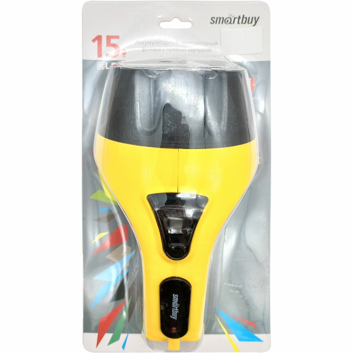 Фонарь ручной SmartBuy аккумуляторный, светодиодный, 15 LED, прямая зарядка от сети, желтый SBF-85-Y