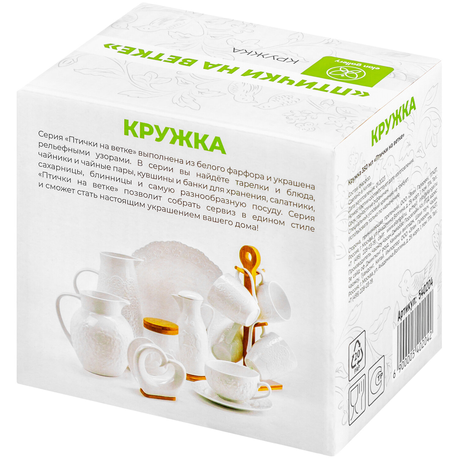 Кружка Фарфор 350 Птички на Ветке Белая (12) Элан 540204 .