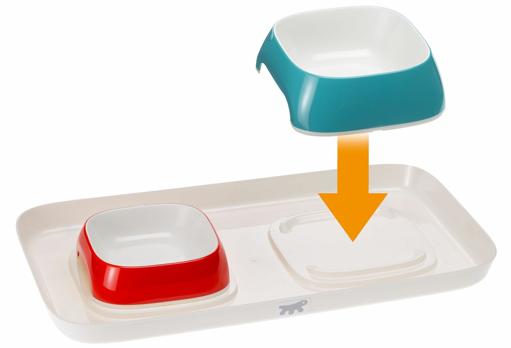 Пластиковый поднос с серыми мисками для кошек и собак GLAM XS