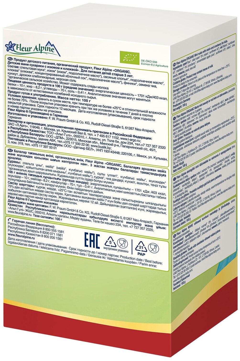 Купить Сухарики детские Fleur Alpine мини с изюмом и клюквой, с 3-х лет, 100 гр