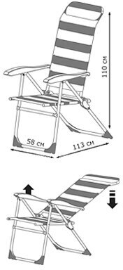 | Плюсы: | Хороший шезлонг, регулируемый наклон спинки, удобная посадка в кресле. |