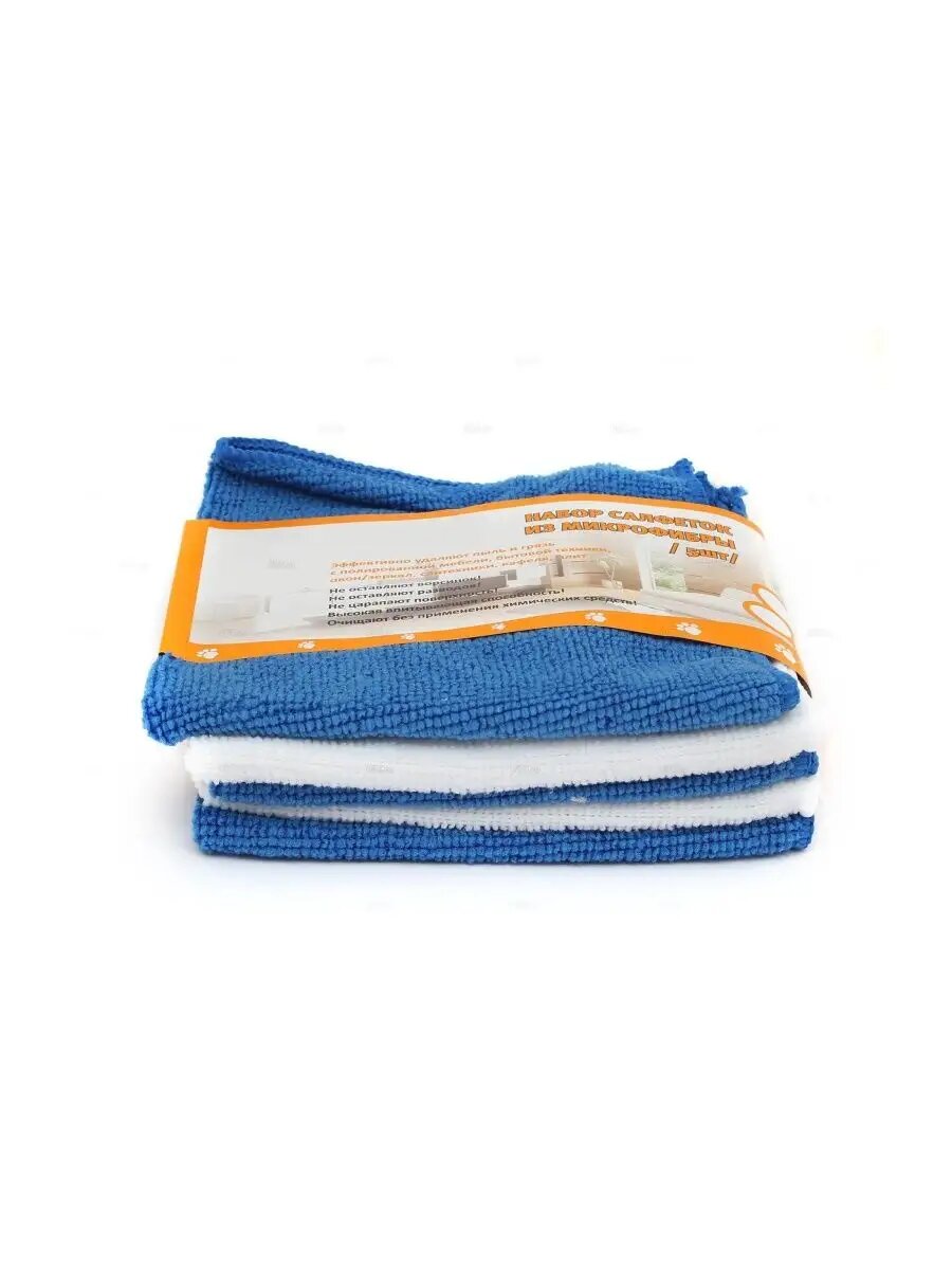 Салфетка из микрофибры Рыжий кот MFS-01/5 5 шт, синий/белый