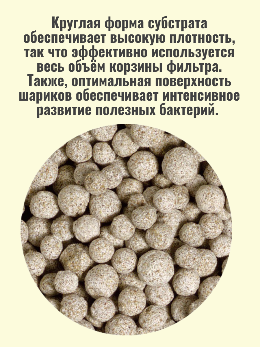 | Отзыв: | Отличный субстрат, использую не первый год, один из лучших на рынке, с биологией справляется на ура, удобен в эксплуатации. Форма шариков позволяет субстрату компактно укладываться в корзину фильтра, что позволяет лучше использовать ее объем. |