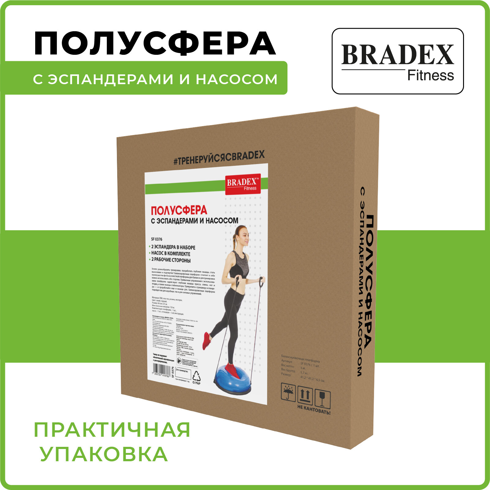 BRADEX Полусфера Bradex SF 0376 Bosu с эспандерами и насосом, BRADEX