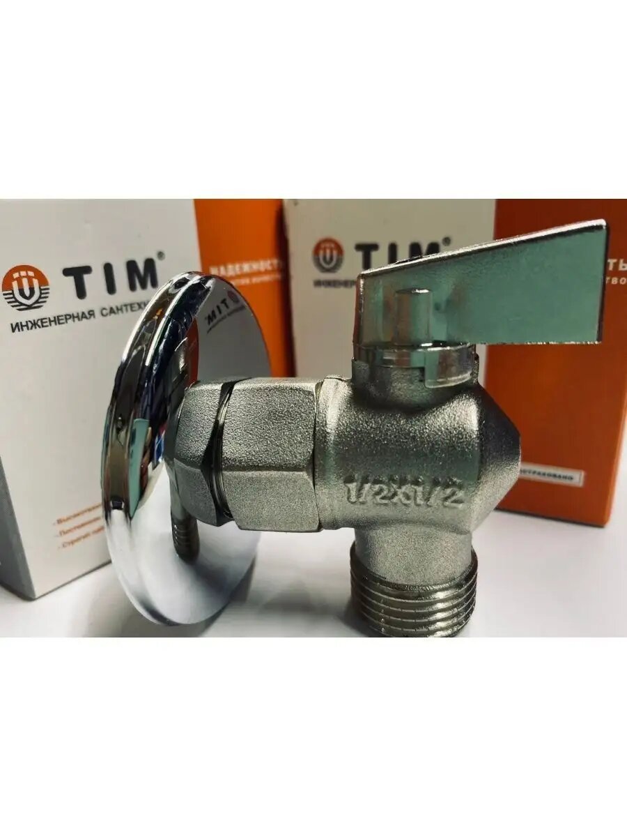 Кран шаровой угловой TIM - 1/2" x 1/2" (НР/НР, с отражателем, никелированный)