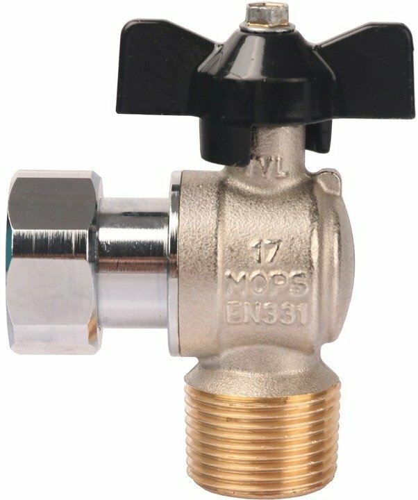 Кран шаровой с накидной гайкой угловой, НР/накидная гайка, ручка бабочка 3/4x3/4 (Stout)