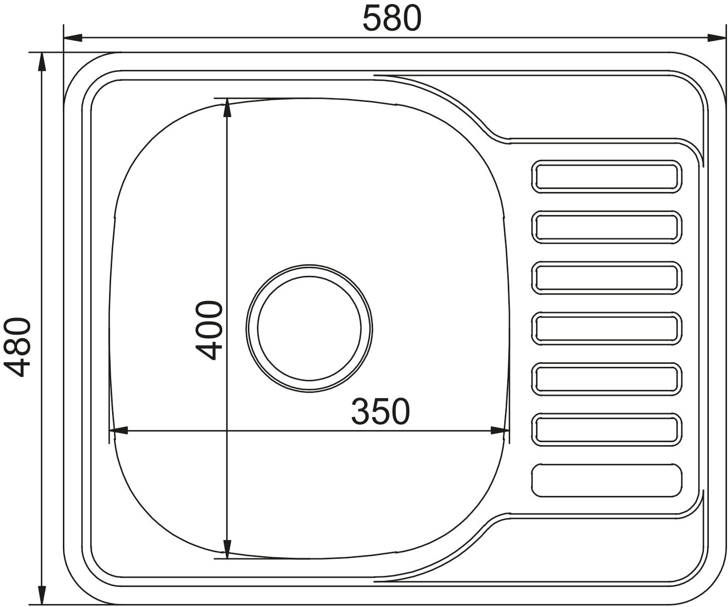 Врезная кухонная мойка Mixline из нержавеющей стали рифленая прямоугольная 48х58 см выпуск 3 1/2 глубина 18 см, крыло левое