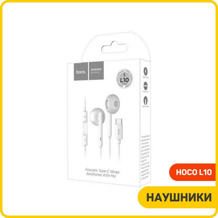 Наушники L10, Type-C, HOCO, вакуумные с микрофоном, белые