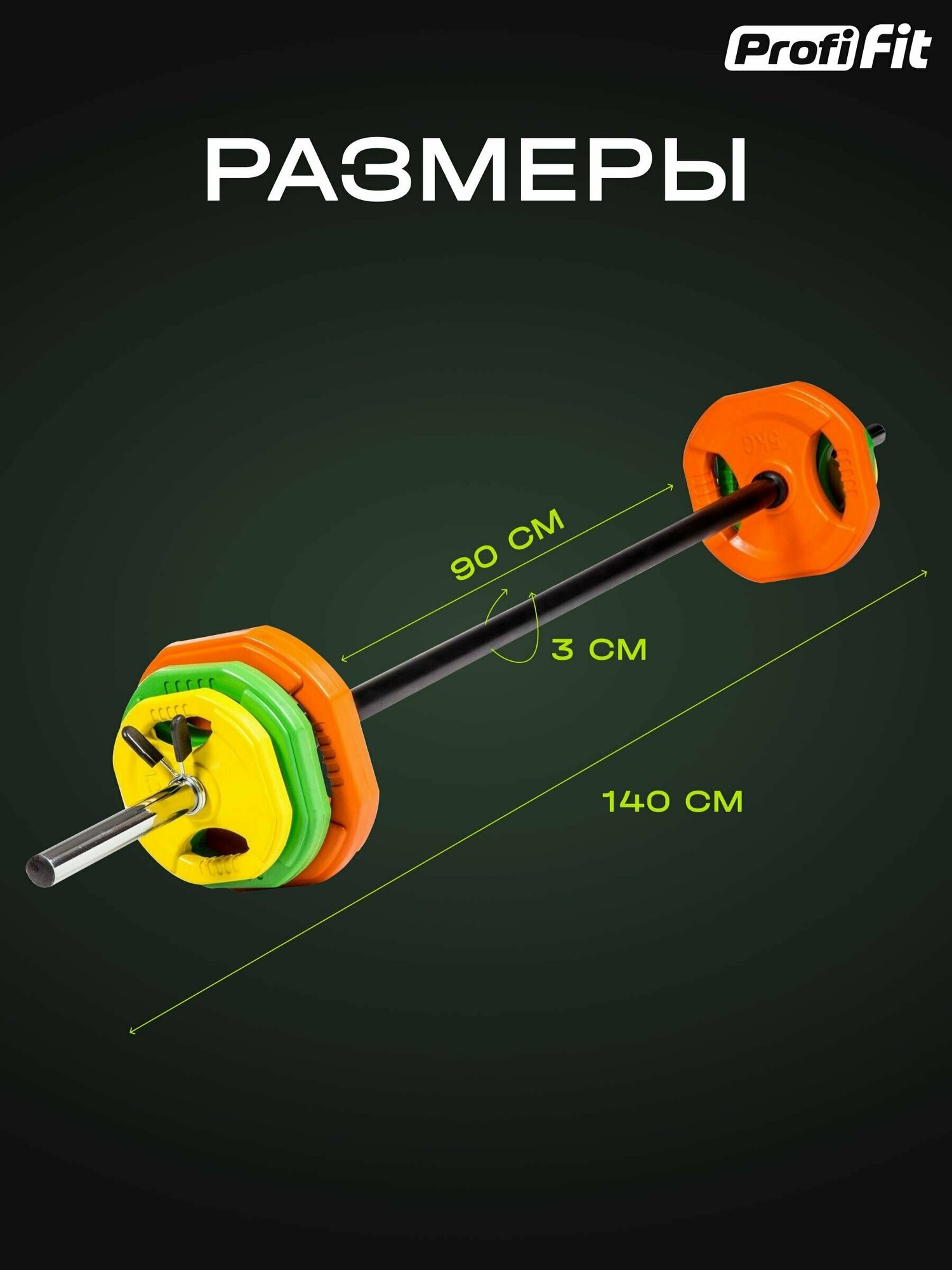 Штанга с блинами PROFI-FIT спортивная для бодипампа и фитнеса, разборная, 19 кг