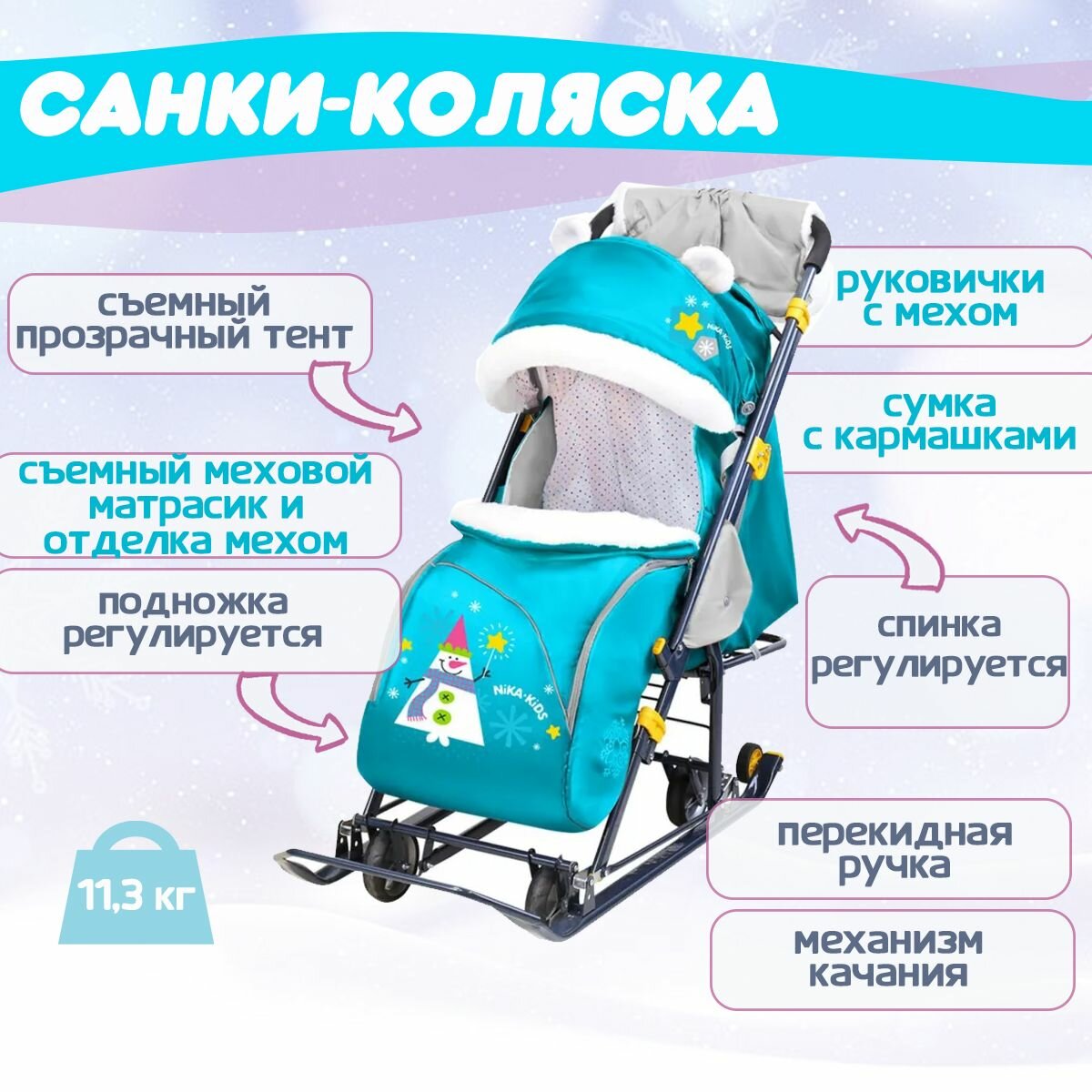 Ниже Вы можете прочитать отзывы на Санки-коляска Nika Ника-детям 7-6 НД7-6, со снеговиком бирюзовый, ознакомится с подробными характеристиками, посмотреть интересные обзоры и фотографии на Санки-коляска Nika Ника-детям 7-6 НД7-6, со снеговиком бирюзовый.