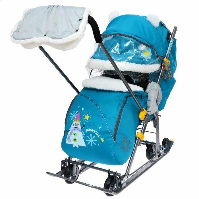 Купить Санки-коляска Nika Ника-детям 7-6 НД7-6, со снеговиком бирюзовый