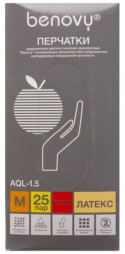Benovy Перчатки Benovy (L) латексные нестерильные текстурированные, 50 пар/уп
