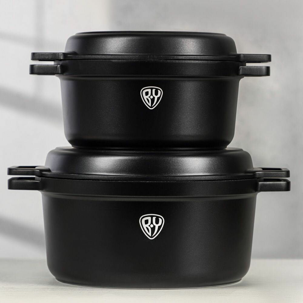 Славяна / Казан с крышкой-сковородой 2,6л, 20 см, литой алюминий, с антипригарным покрытием толстостенный, индукция/ набор казан и сковорода