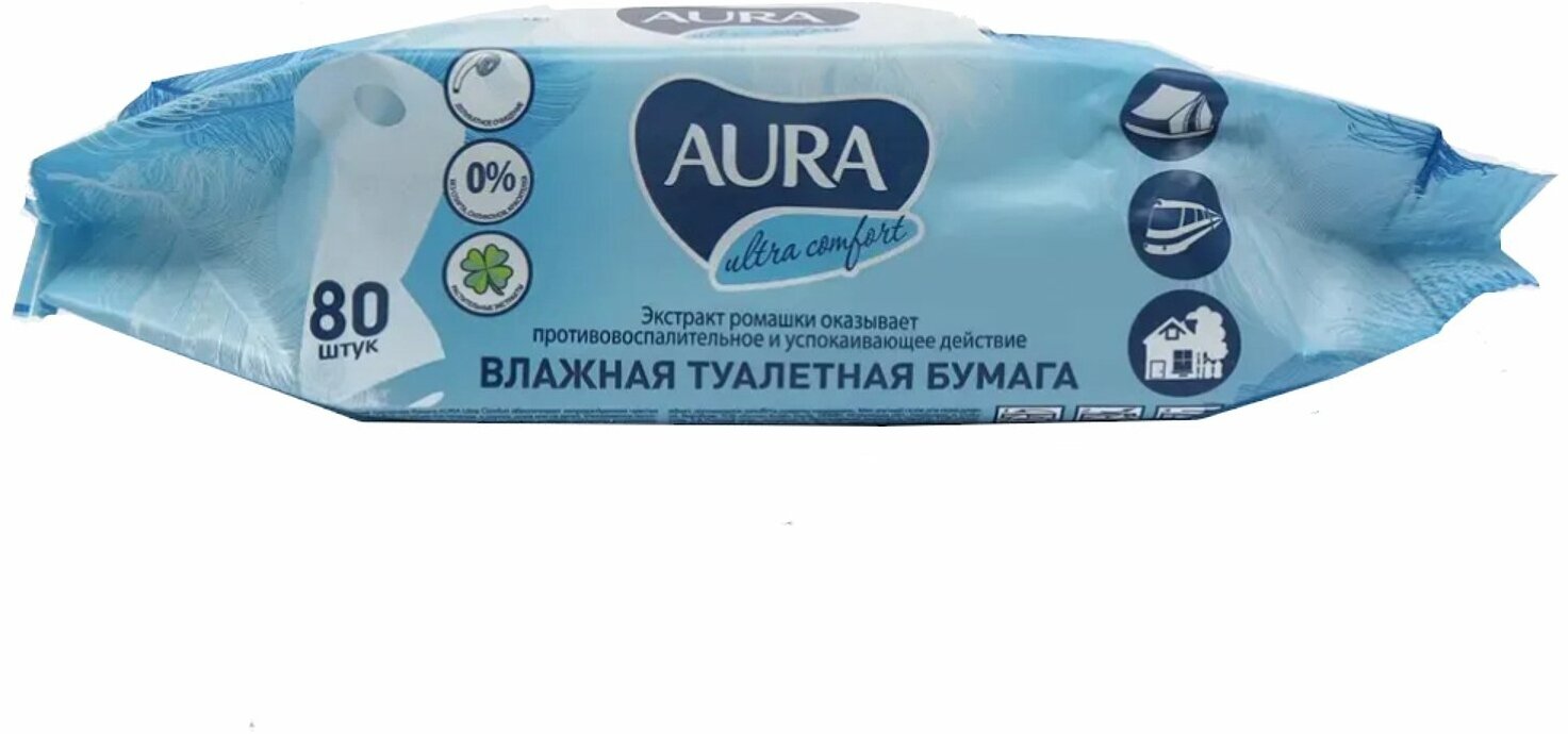 Влажная туалетная бумага Aura Ultra Comfort, упаковка 80 шт