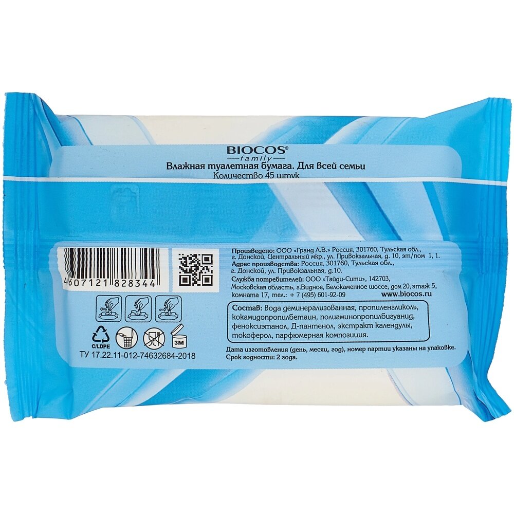 Влажная туалетная бумага BioCos для всей семьи, 45 шт интересное: