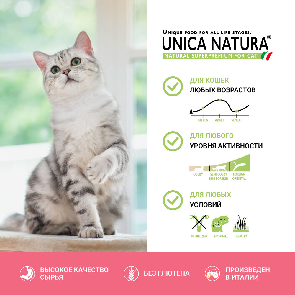 Сухой корм для стерилизованных кошек Unica Natura с лососем, с рисом, С яблоком 1.5 кг интересное: