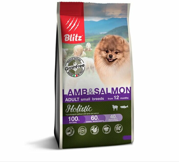 Blitz (Блиц) холистик корм д/собак беззерновой Ягненок/лосось мелкие породы ADULT LAMB&SALMON 1,5 кг
