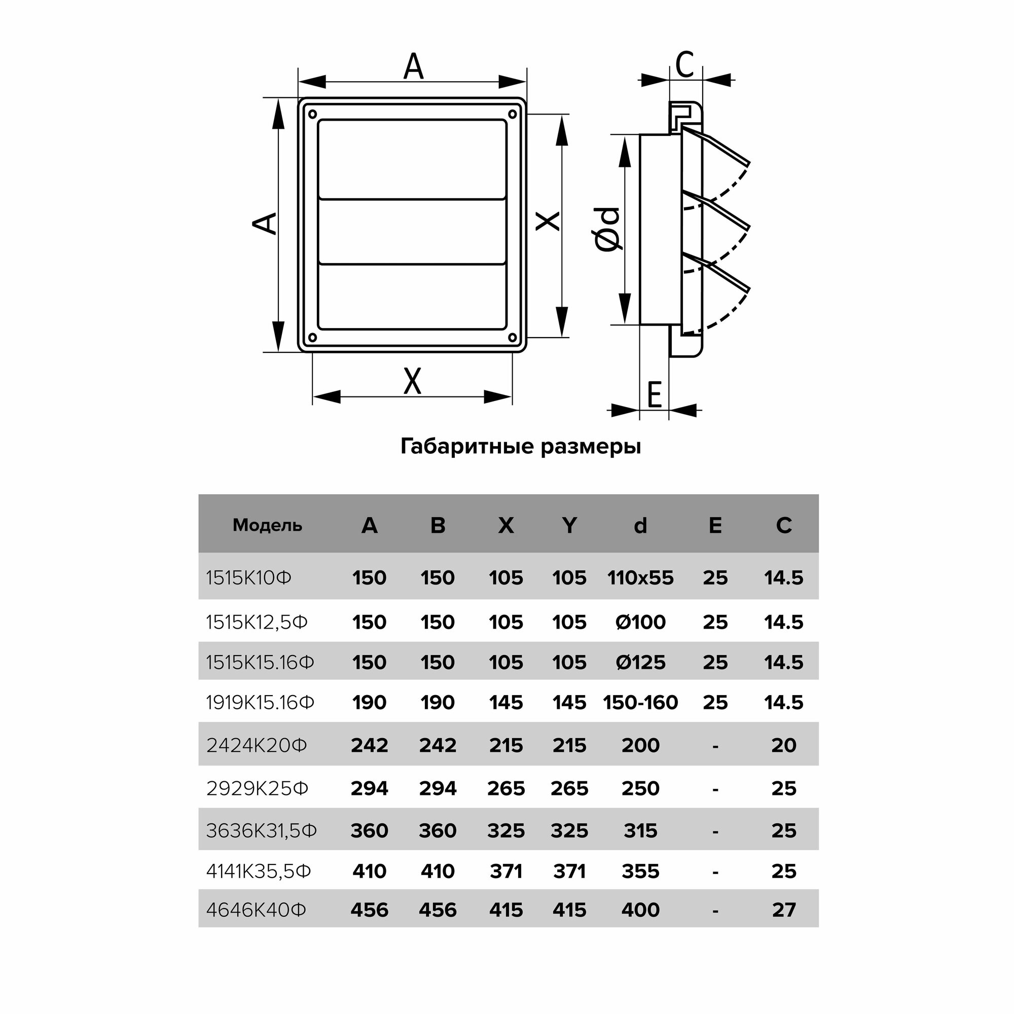 Решетка вытяжная с гравитационными жалюзи 1515К12,5Ф сер 150х150 d125 серая
