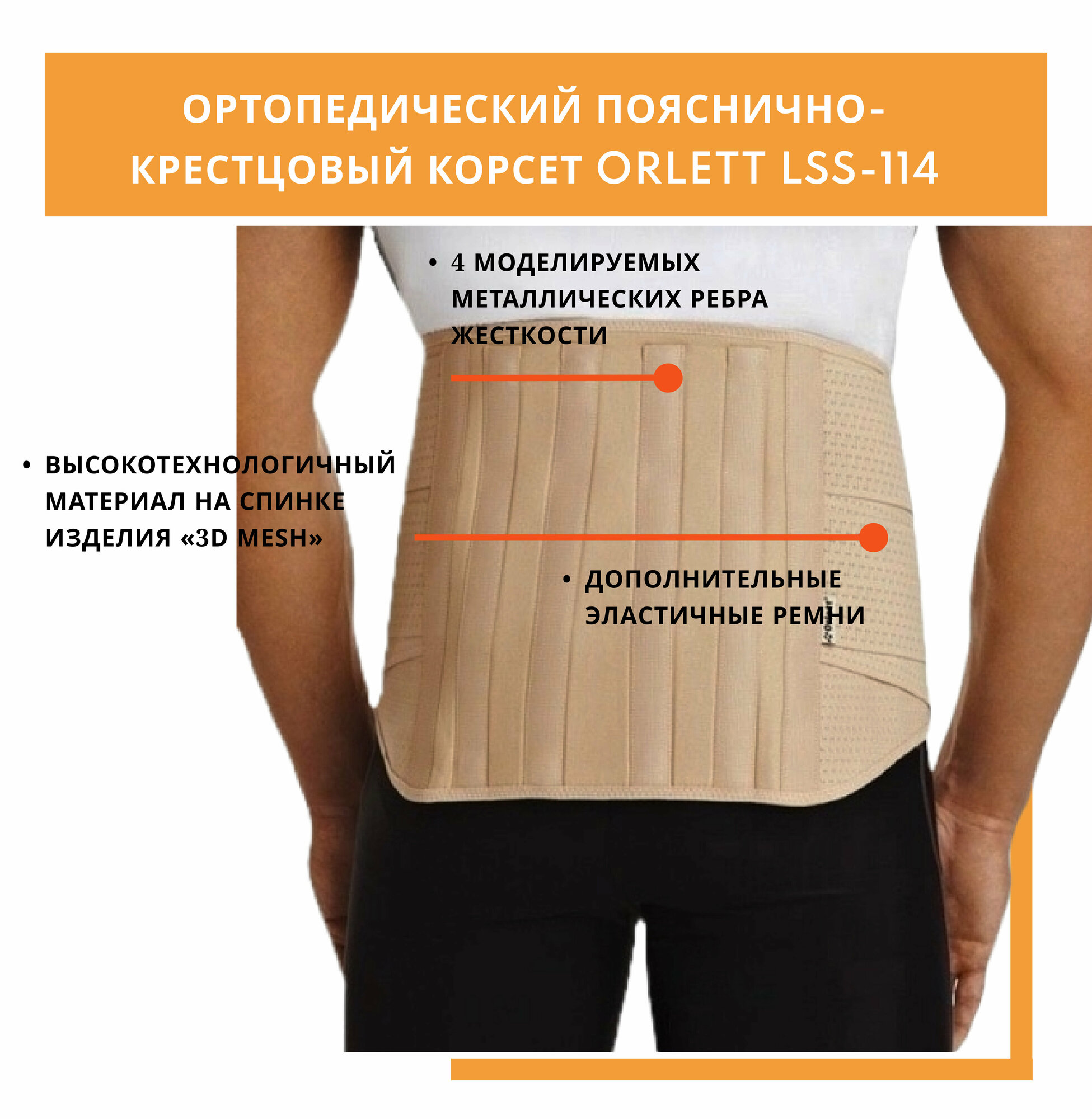 ORLETT Х0108731 Корсет пояснично-крестцовый полужесткий Orlett LSS-114 2G (XXL до 165 см / 25 / Бежевый)