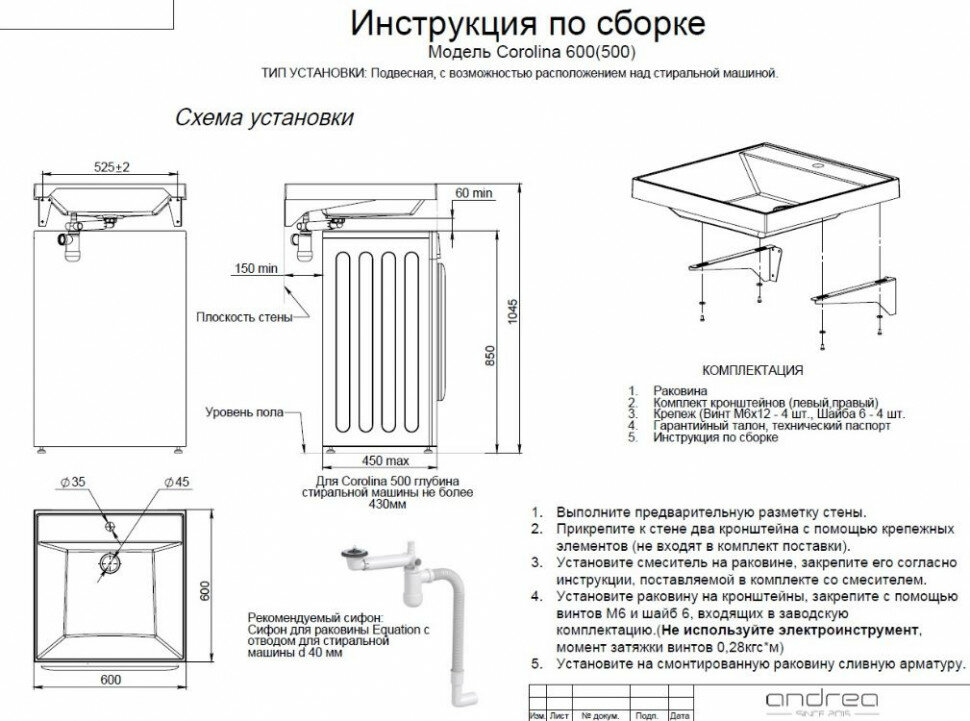 Раковина Andrea Corolina 600 4680028070405 над стиральной машиной интересное:
