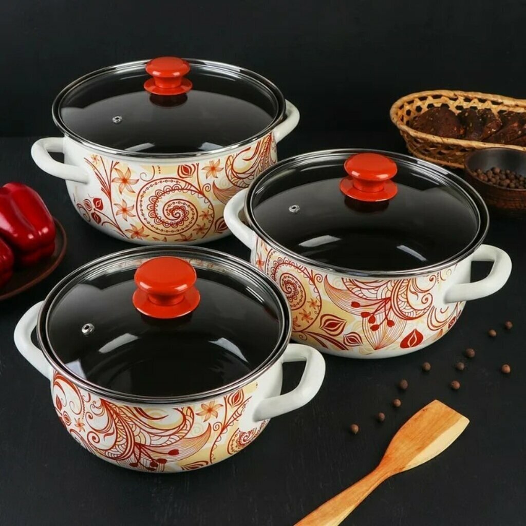 Купить Набор Посуды Эмаль 3ПР Нежный ШОРОХ-1 Экстра Сфер 2л3л4л КМЗ Нежный ШОРОХ-1 Экстра .