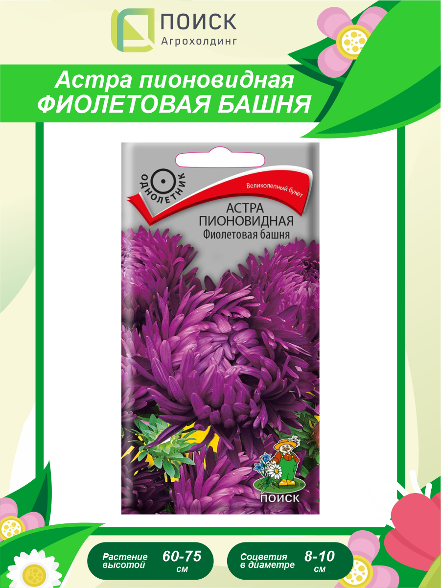 Семена Цветы, Астра, Фиолетовая башня, 0.3 г, пионовидная, цветная упаковка, Поиск