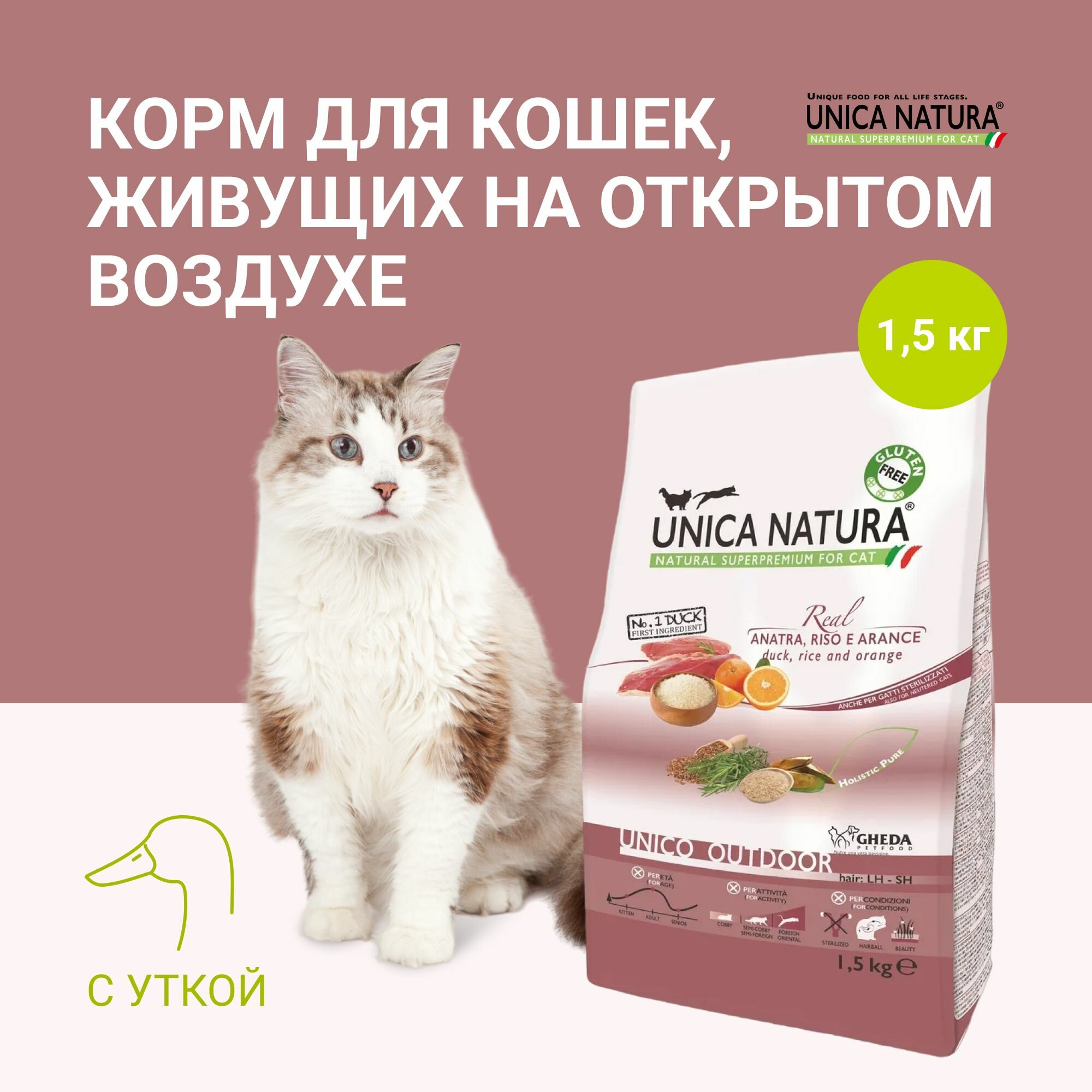 UNICA Outdoor сухой корм для кошек с уткой, рисом и апельсинами, 1,5 кг интересное: