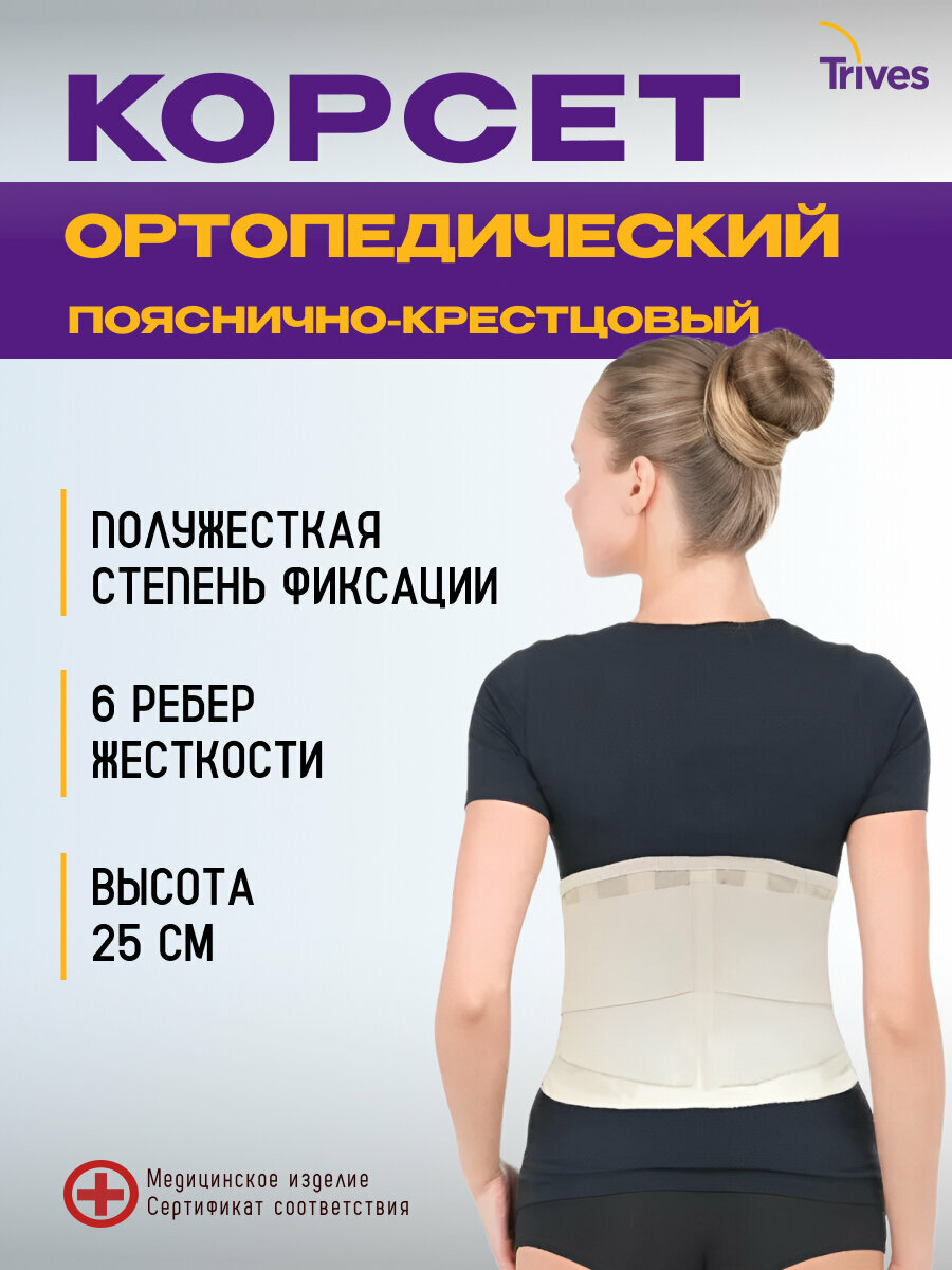Ортопедический пояснично-крестцовый корсет для спины 25 см. средней жесткости (6 метал. ребер жесткости) Тривес Т.58.05 (Т-1555), размер M, бежевый