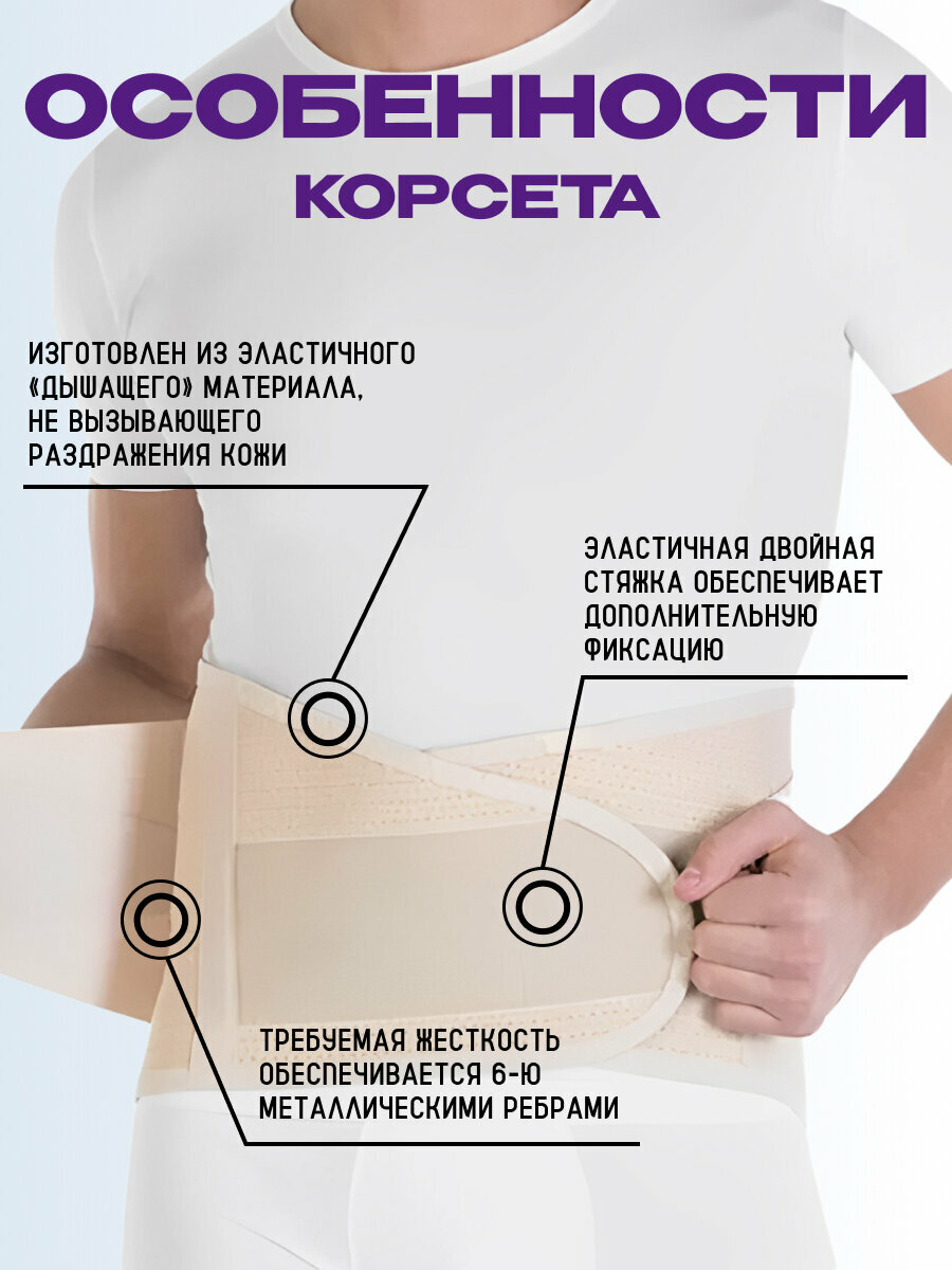 Ортопедический пояснично-крестцовый корсет для спины 25 см. средней жесткости (6 метал. ребер жесткости) Тривес Т.58.05 (Т-1555), размер XXL, бежевый