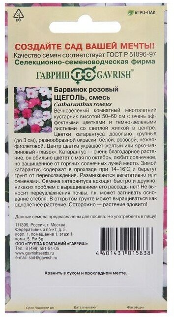 Семена Гавриш Барвинок розовый (Катарантус) Щеголь (3 упаковки *0,05 г) интересное: