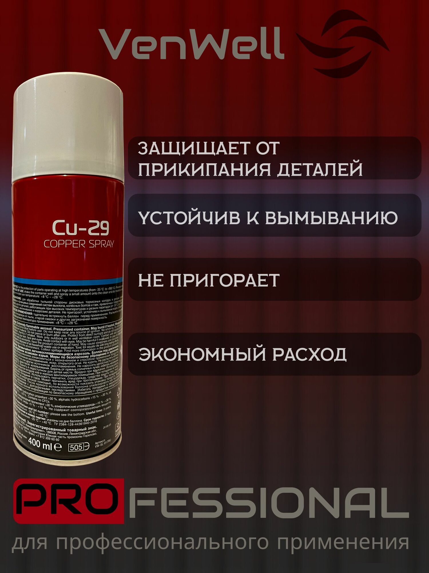 Venwell Медная смазка Cu-29 Copper Spray 400 мл Vw-sl- 017RU .
