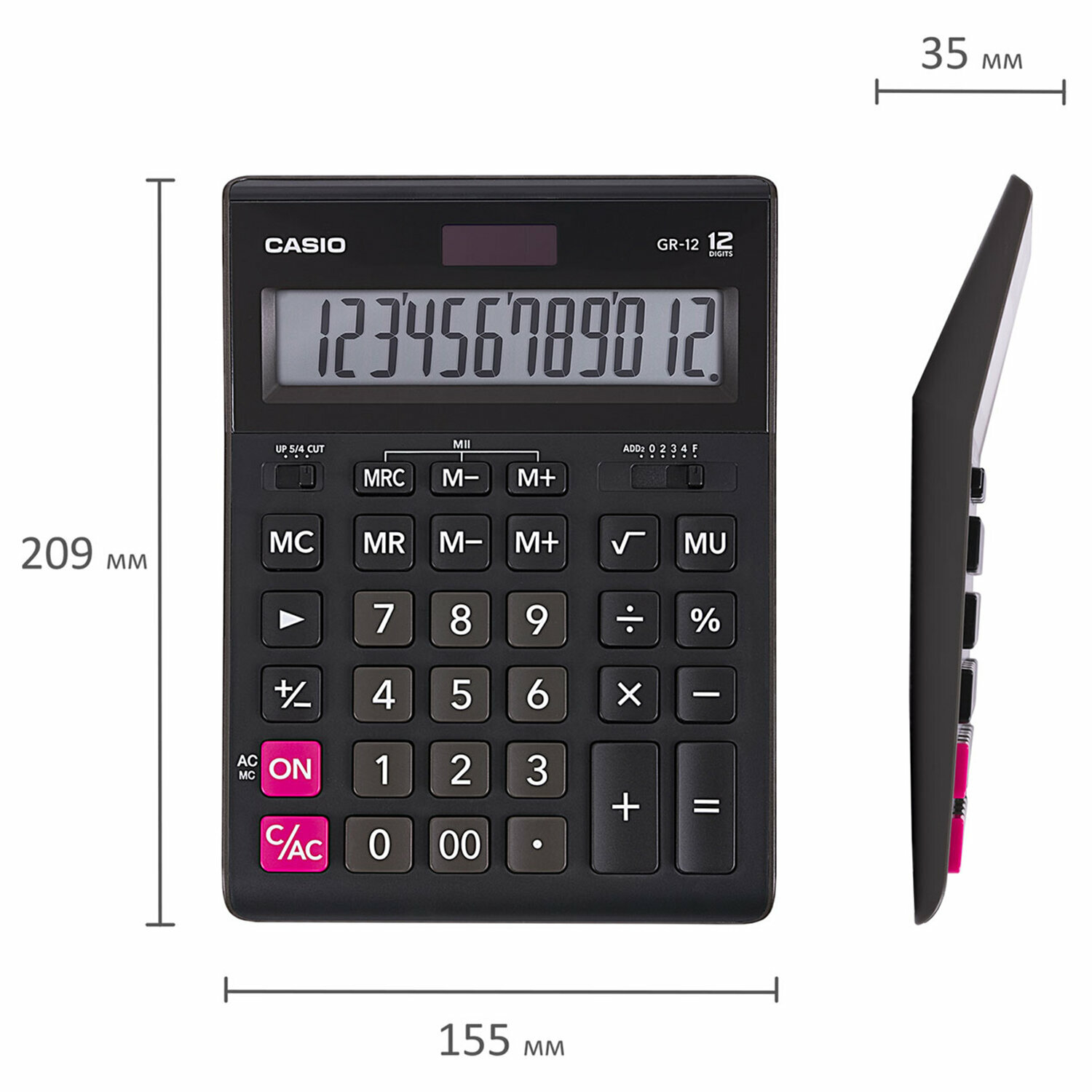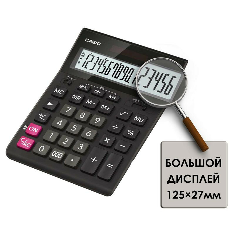 Калькулятор Casio настольный, 12 разрядов, двойное питание, 209х155 мм, черный (GR-12-W-EP)